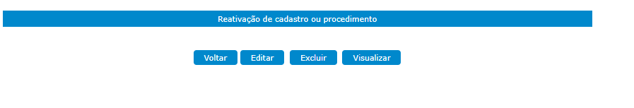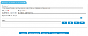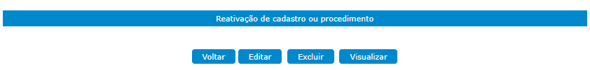 Em caso de reabertura de processo/procedimento já com “Baixa Definitiva”, basta clicar no botão inferior “Reativação de cadastro ou procedimento”