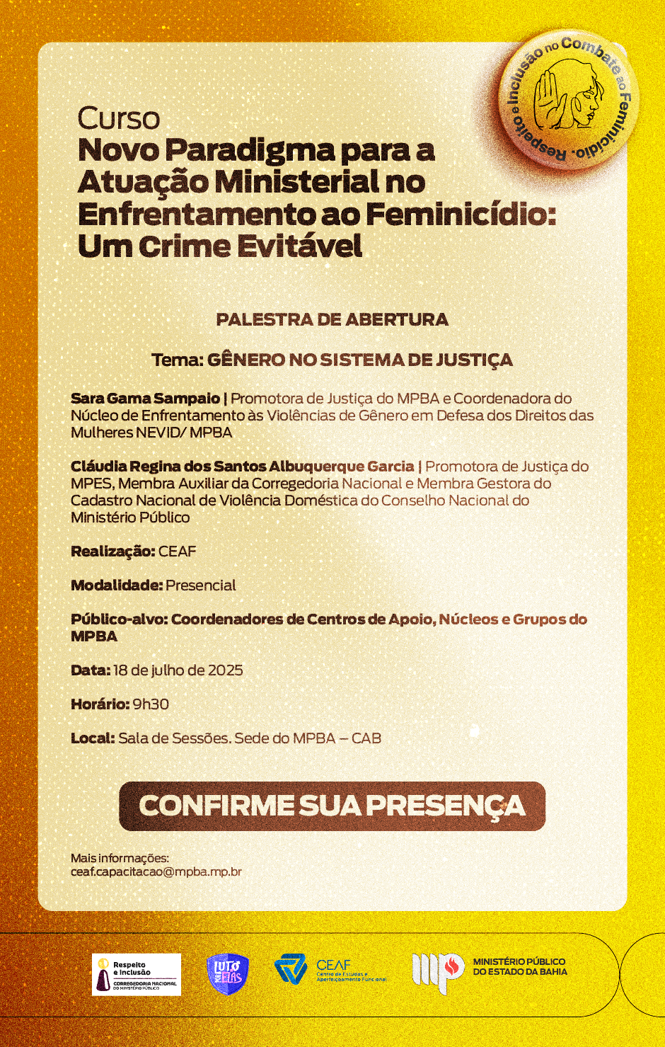 Selo “Respeito e Inclusão no Combate ao Feminicídio” – Curso Novo Paradigma para a Atuação Ministerial no Enfrentamento ao Feminicídio: Um Crime Evitável