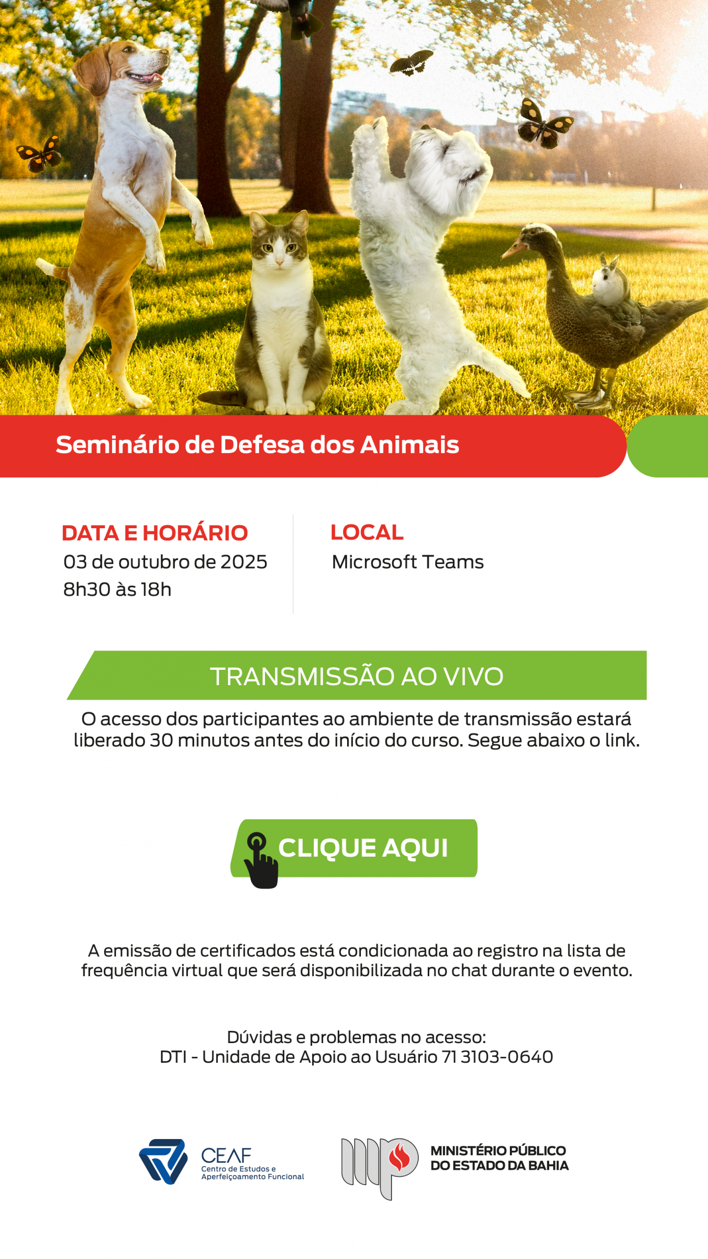 TRANSMISSÃO AO VIVO – SEMINÁRIO EM DEFESA DOS ANIMAIS