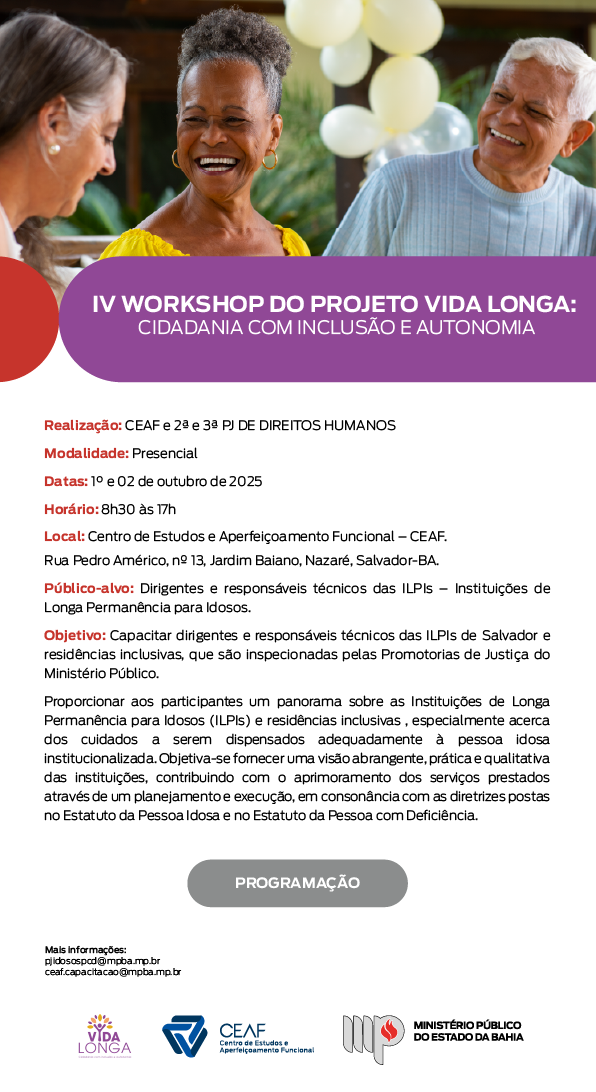 IV WORKSHOP DO PROJETO VIDA LONGA: CIDADANIA COM INCLUSÃO E AUTONOMIA