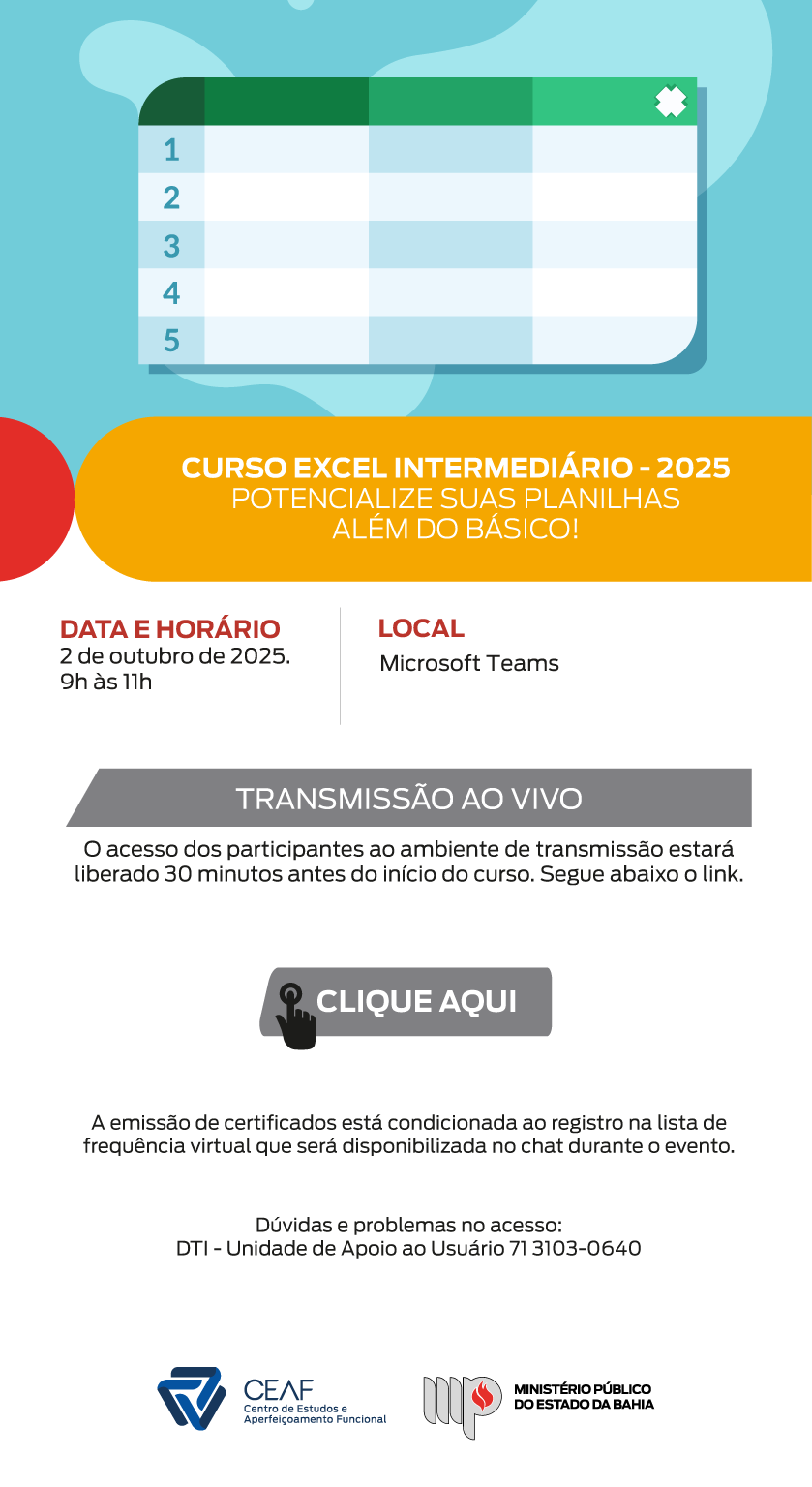 TRANSMISSÃO AO VIVO – CURSO EXCEL INTERMEDIÁRIO – 02/10