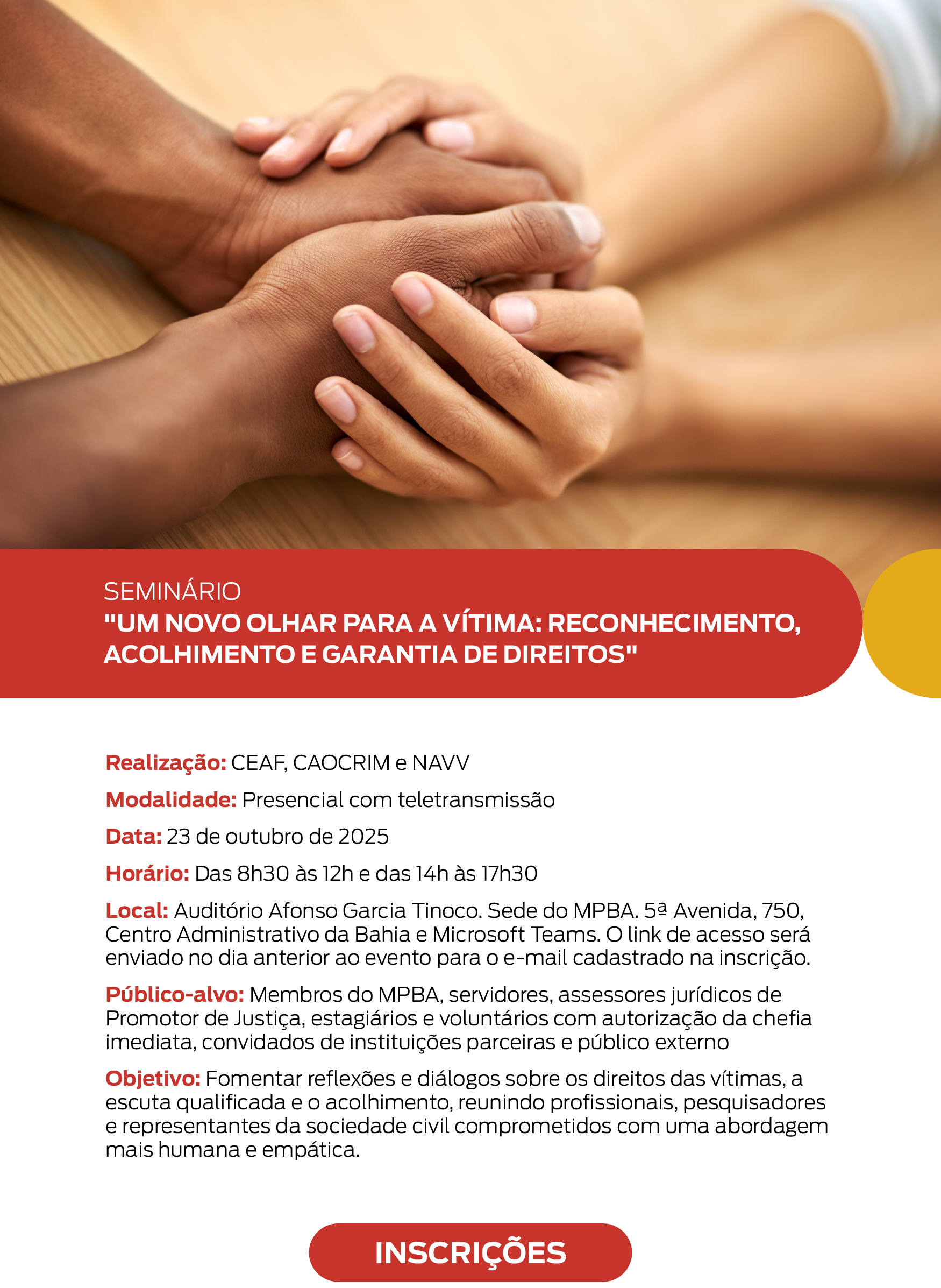 SEMINÁRIO “UM NOVO OLHAR PARA A VÍTIMA: RECONHECIMENTO, ACOLHIMENTO E GARANTIA DE DIREITOS”