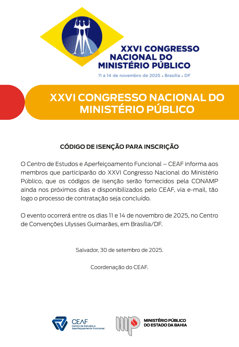 XXVI CONGRESSO NACIONAL DO MINISTÉRIO PÚBLICO – ISENÇÃO PARA INSCRIÇÃO