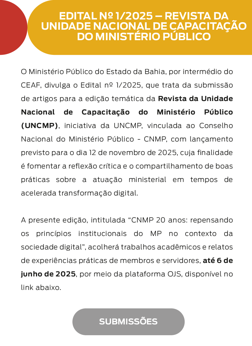 EDITAL Nº 1/2025 – REVISTA DA UNIDADE NACIONAL DE CAPACITAÇÃO DO MINISTÉRIO PÚBLICO