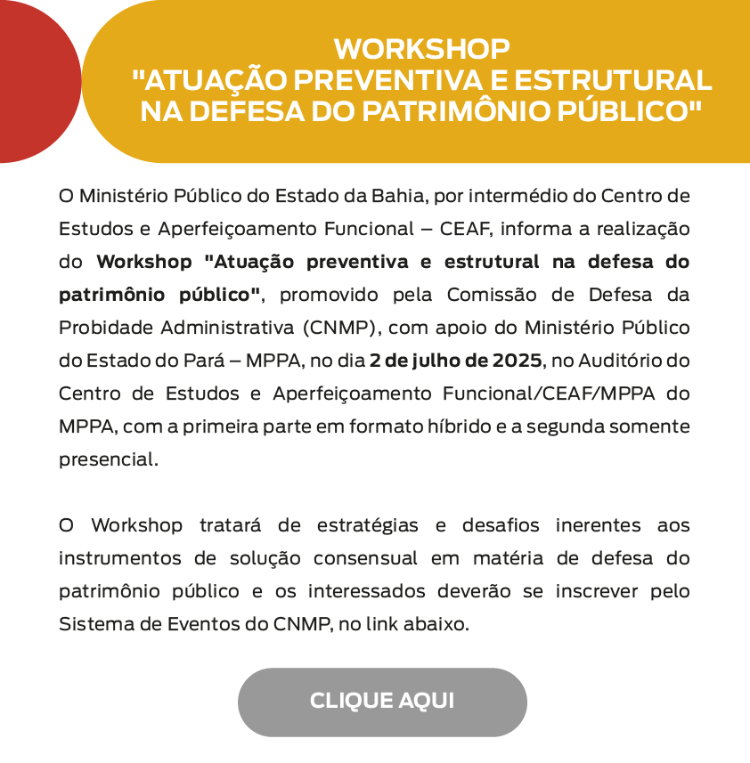 WORKSHOP “ATUAÇÃO PREVENTIVA E ESTRUTURAL NA DEFESA DO PATRIMÔNIO PÚBLICO”