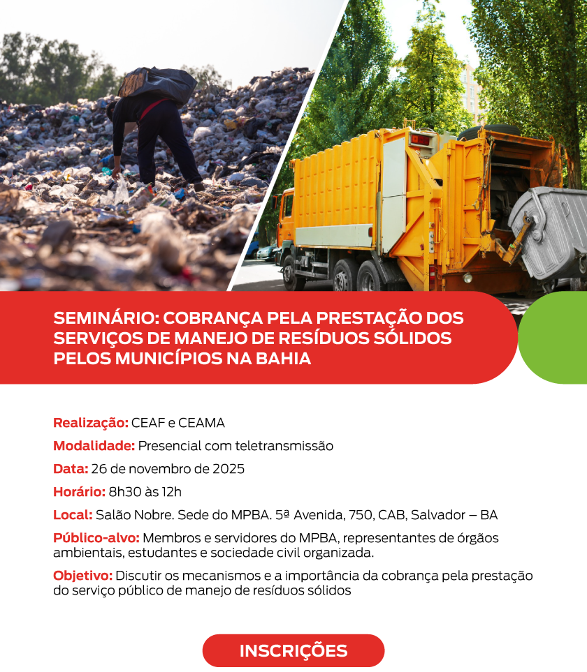 SEMINÁRIO COBRANÇA PELA PRESTAÇÃO DOS SERVIÇOS DE MANEJO DE RESÍDUOS SÓLIDOS PELOS MUNICÍPIOS NA BAHIA