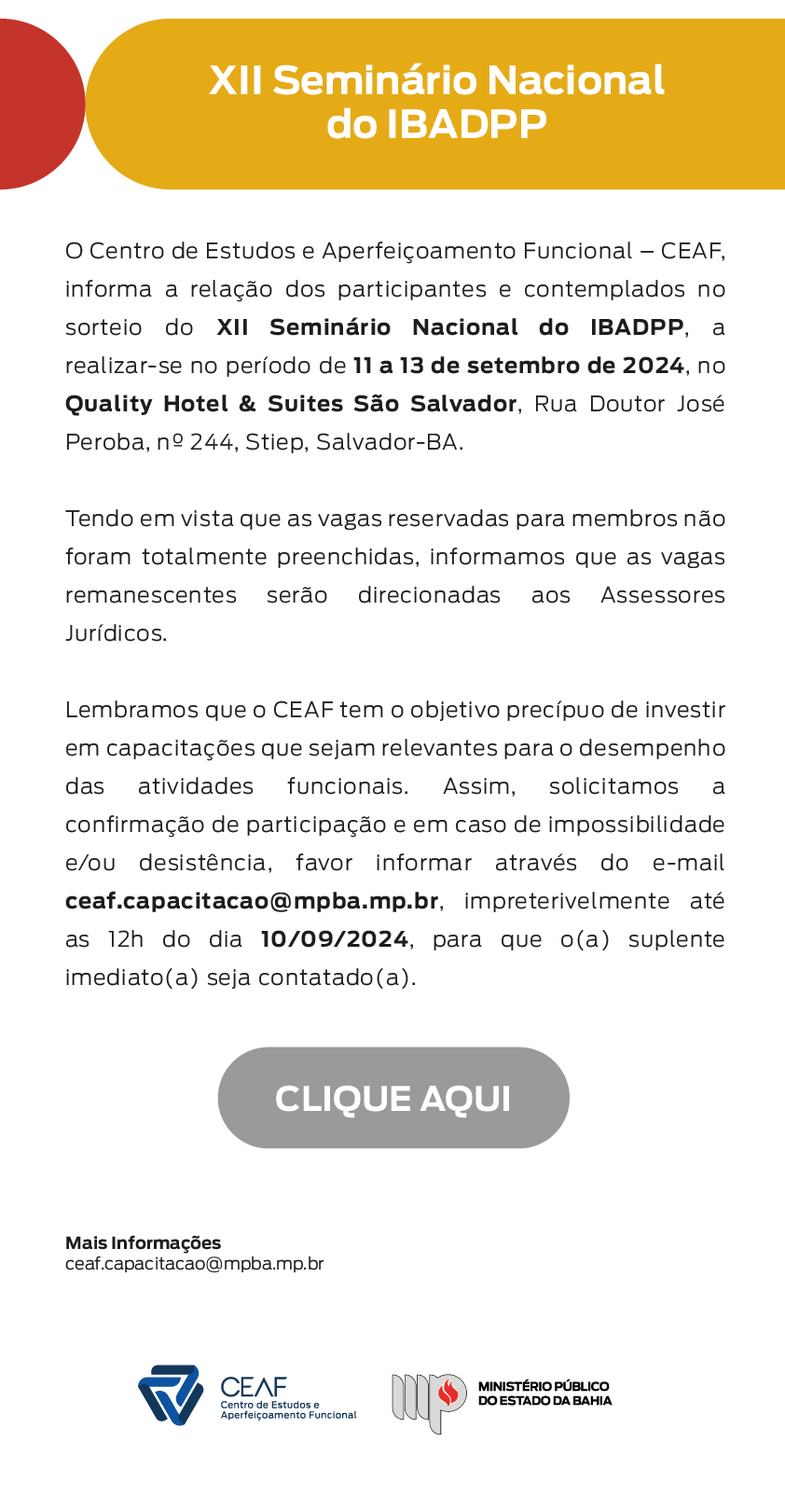 Sorteio de vagas – XII Seminário Nacional do IBADPP
