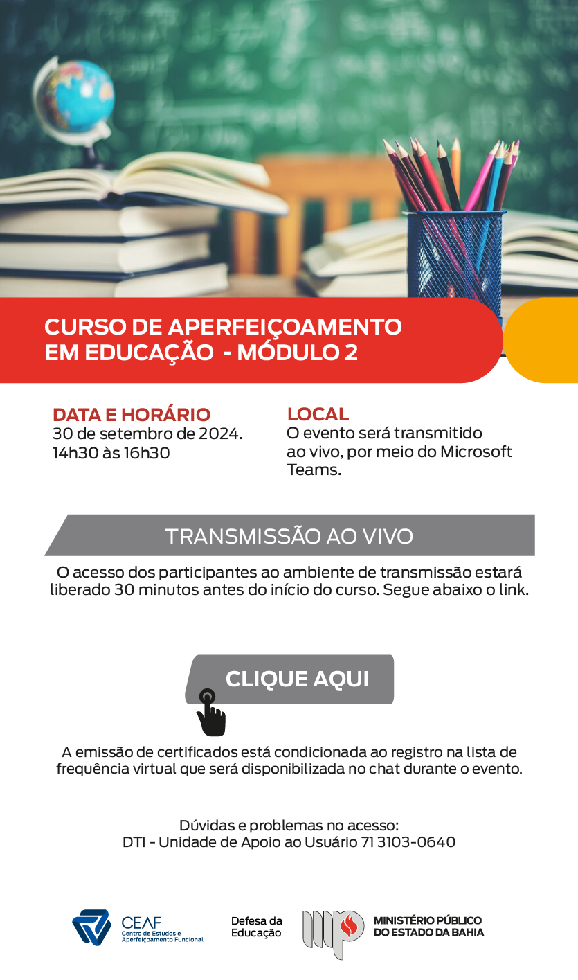 TRANSMISSÃO AO VIVO – CURSO DE APERFEIÇOAMENTO EM EDUCAÇÃO – MÓDULO 2