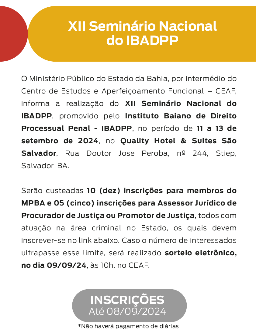 SORTEIO DE INSCRIÇÕES – XII SEMINÁRIO NACIONAL DO IBADPP